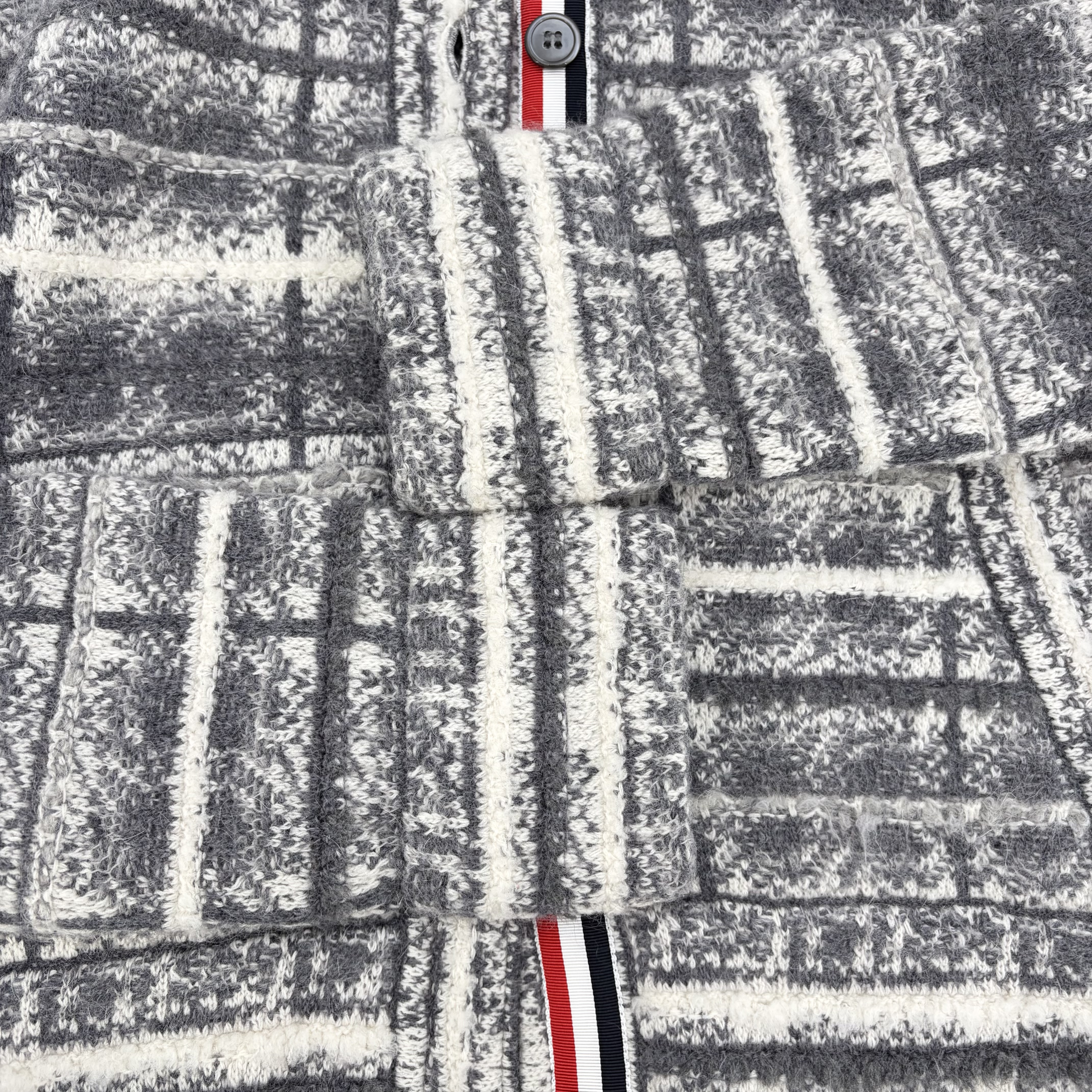 톰브라운 페일그레이 사선 TB 타탄 체크 울 폴로 자켓 - A234073